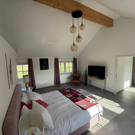 Caratterizzato da una vista sul giardino, l'arredamento interno è dotato di una TV a schermo piatto con canali satellitari. La Horse Lodge De Belian dispone di un bagno con una vasca idromassaggio.